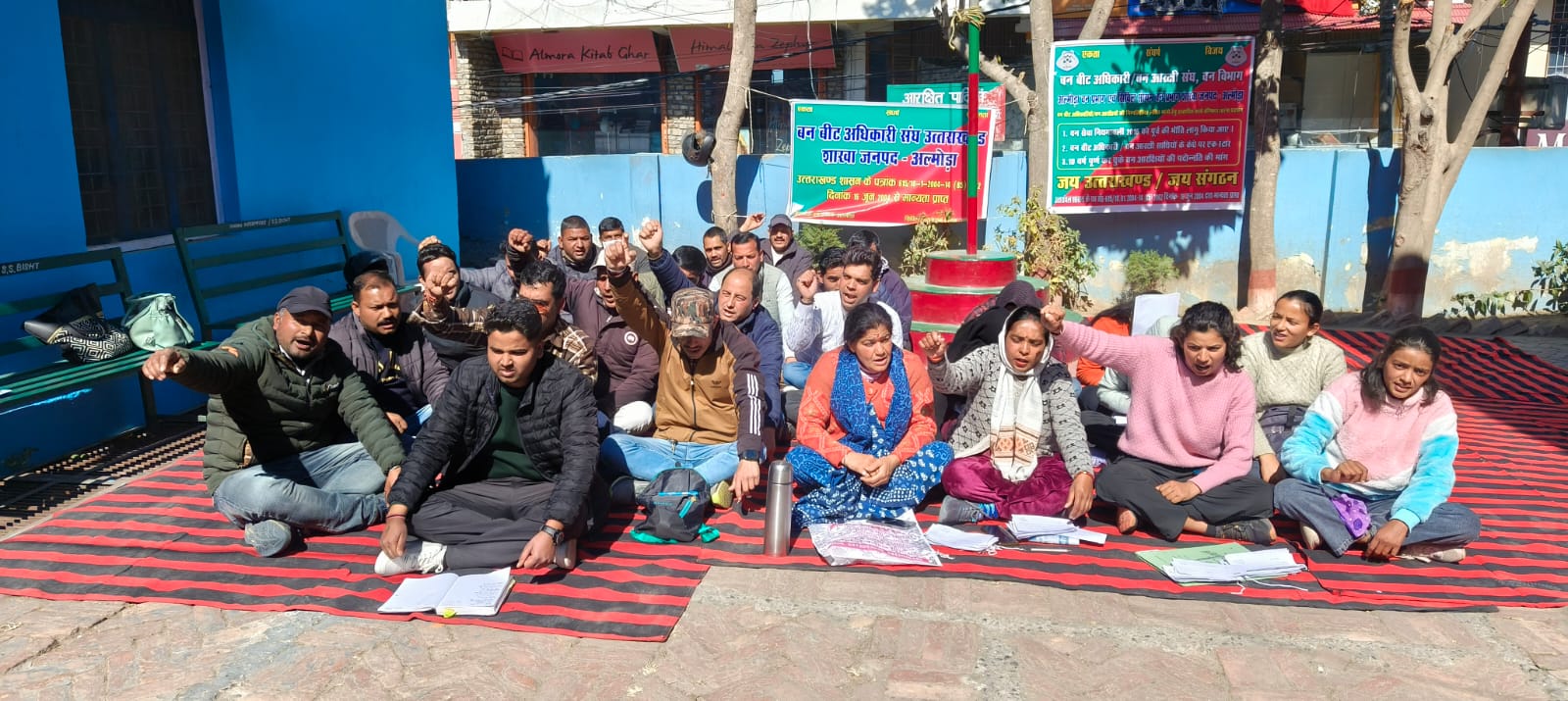 मांगों को लेकर वन आरक्षियों का अनिश्चितकालीन धरना जारी