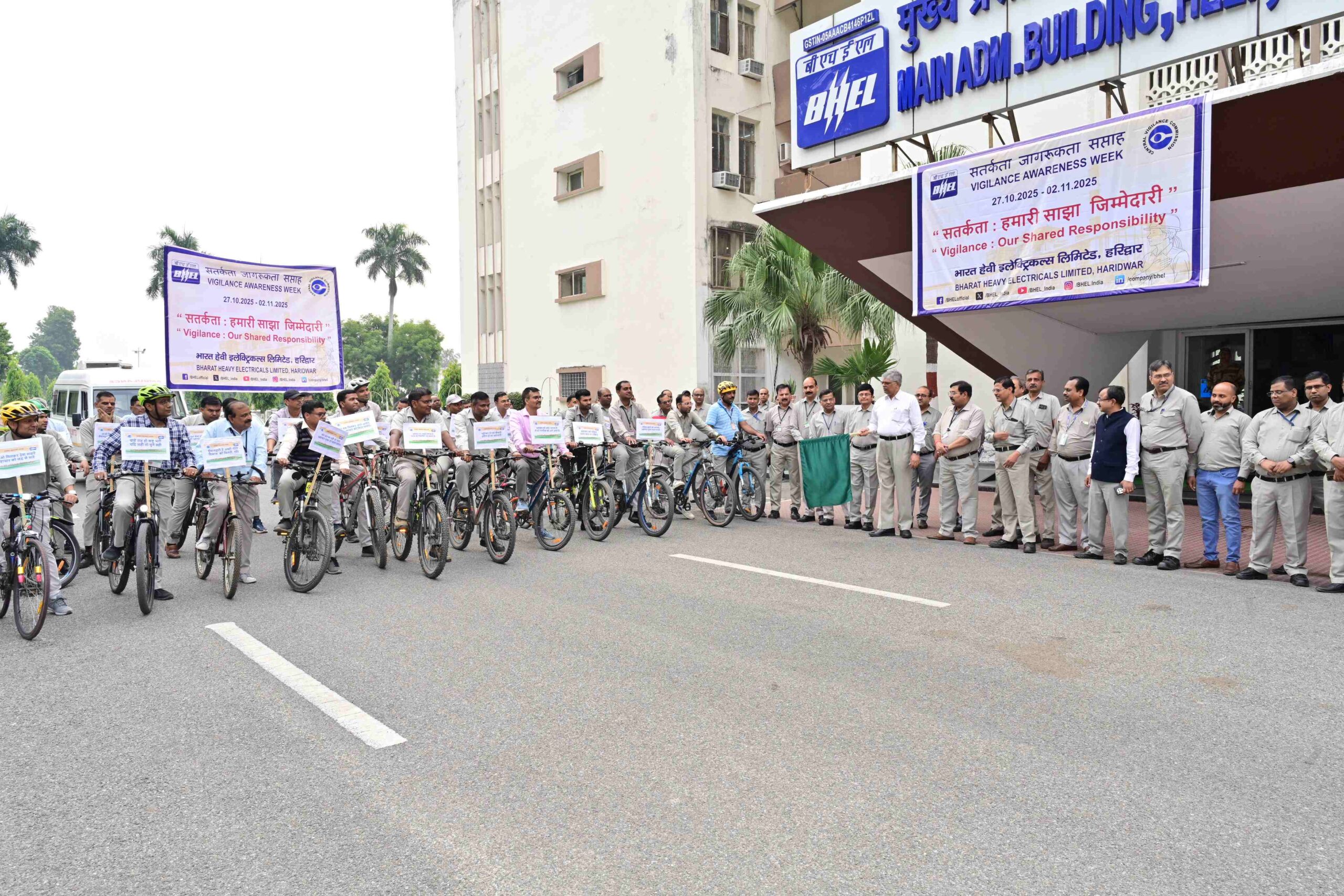 हरिद्वार। सार्वजनिक जीवन में ईमानदारी तथा सत्यनिष्ठा को बढ़ावा देने के उद्देश्य से, बीएचईएल हरिद्वार में सतर्कता जागरूकता सप्ताह – 2025 मनाया जा रहा है । इस वर्ष के सतर्कता जागरुकता सप्ताह की विषयवस्तु है “सतर्कता: हमारी साझा जिम्मेदारी” । इस उपलक्ष्य में भ्रष्टाचार के विरूद्ध जागरूकता फैलाने के उद्देश्य से, एक साइकिल रैली ‘साइक्लोथॉन’ का आयोजन किया गया । बीएचईएल हरिद्वार के महाप्रबंधक एवं प्रमुख श्री रंजन कुमार ने हरी झंडी दिखाकर रैली को रवाना किया ।