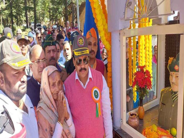 चम्पावत। नगर से लगे गांव रायनगर चौड़ी के मुख्य द्वार पर शहीद शंकर दत्त राय की प्रतिमा और स्मारक का अनावरण किया गया। इस दौरान कई जनप्रतिनिधि और प्रशासन के अधिकारी मौजूद रहे। रविवार को पीजी कॉलेज के पास रायनगर चौड़ी के मुख्य द्वार पर ग्राम प्रधान जानकी देवी की अध्यक्षता पर मुख्य अतिथि विधायक खुशाल सिंह अधिकारी ने शहीद शंकर दत्त राय की प्रतिमा का अनावरण किया। विशिष्ट अतिथि ब्लाक प्रमुख महेंद्र सिंह ढेक, डीएम मनीष कुमार, एडीएम केएन गोस्वामी, पीजी कॉलेज प्राचार्य डॉ. संगीता गुप्ता, सैनिक कल्याण विभाग के सहायक अधिकारी हीरा सिंह धौनी, पूर्व सैनिक संगठन के जिलाध्यक्ष कै. आरएस देव रहे। इस दौरान शहीद के भाई शिक्षक कमल राय ने बताया कि 22 जुलाई 1996 को 26 वर्ष की आयु में दुश्मनों के साथ आरपार की लड़ाई में वह शहीद हो गए। इस दौरान लोगों ने देश भक्ति के नारे लगाए और उनकी प्रतिमा पर माल्यार्पण कर पुष्प चक्र अर्पित किए। संचालन जीवन मेहता और नरेश राय ने किया। इस मौके पर शहीद की मां लक्ष्मी देवी, रीता राय,व्यापार मंडल अध्यक्ष मनीष जुकरिया, भवानी दत्त राय, नाथू राम राय, कै. खीमानंद राय,गणेश दत्त राय, पूर्व ब्लाक प्रमुख योगेश मेहता, अमित राय, पार्वती देवी, माया राय, गीता कापड़ी, मीना भट्ट, प्रकाश राय, मोहित राय, सुरेश राय, हरीश राय, प्रकाश साह, शैलेंद्र राय, भगीरथ भट्ट, डॉ. अमर सिंह कोटियाल, चांद बोहरा, लक्ष्मण सिंह मेहता, प्रकाश बगौली, भुवन चंद्र राय, मुकुल राय, नरेश जोशी, गोविंद बोहरा,रीता गहतोड़ी, शांभवी मुरारी, हेमा बिष्ट,आराध्या भट्ट, राकेश मधूसूदन आदि मौजूद रहे।
