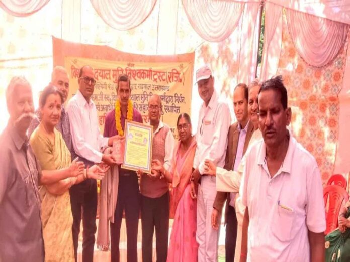 कोटद्वार। नगर निगम के अंतर्गत पश्चिमी झंडीचौड़ में रविवार को विश्वम्भर दयाल मुनि विश्वकर्मा ट्रस्ट की ओर से आयोजित कार्यक्रम में ट्रस्ट के संस्थापक अध्यक्ष स्व. विश्वम्भर दयाल मुनि विश्वकर्मा के स्मृति दिवस व ट्रस्ट के पूर्व अध्यक्ष स्व. कान्ति प्रकाश आर्य की 8 वीं पुण्यतिथि पर उन्हें श्रद्धांजलि अर्पित की गई । पार्षद सुखपाल शाह ने कहा कि मुनि विश्वकर्मा ने जीवन के अंतिम पड़ाव में निर्धन छात्रों को छात्रवृत्ति व अनाथ, दिव्यांग व बेसहारों को आर्थिक सहायता प्रदान करने के उद्देश्य से ट्रस्ट की स्थापना की। कार्यक्रम की मुख्य अतिथि पूर्व दर्जाधारी मंत्री सुनीता बिष्ट ने कहा कि मुनि विश्वकर्मा महर्षि दयानंद सरस्वती के अनुयायी थे, महर्षि के विचारों की रोशनी में ही मुनि ने ट्रस्ट की स्थापना की। इस अवसर पर समाजसेवा के क्षेत्र में उत्कृष्ट योगदान देने पर विकास खंड द्वारीखाल की ग्राम सभा बमोली के पूर्व प्रधान कोमल चन्द्र को विश्वम्भर दयाल मुनि विश्वकर्मा स्मृति सम्मान – 2025 से सम्मानित किया गया, साथ ही ट्रस्ट के पूर्व अध्यक्ष स्व. कान्ति प्रकाश की स्मृति में 10 जरूरतमन्दों को कम्बल भी वितरित किए गए । कार्यक्रम में पूरण चंद्र शर्मा, ट्रस्ट के संस्थापक सचिव डॉ. सुरेन्द्र लाल आर्य, लक्ष्मी देवी, बुद्धि प्रकाश, राजेंद्र प्रसाद शाह, नेत्र सिंह रावत, कमलकुमार और सुरजीत सिंह सहित ट्रस्ट के अन्य सदस्य शामिल रहे।