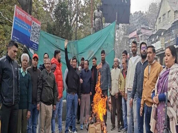 नैनीताल। प्रदेश कांग्रेस नेतृत्व के आह्वान पर नगर अध्यक्ष अनुपम कबड़वाल के नेतृत्व में शुक्रवार को मल्लीताल स्थित पंत प्रतिमा के समीप एस्मा एक्ट लागू करने के विरोध में प्रदर्शन किया गया। इस दौरान राज्य सरकार का पुतला फूंककर विरोध जताया गया। नगर अध्यक्ष अनुपम ने कहा कि प्रदेश सरकार मनमानी पर उतर आई है। एस्मा एक्ट लागू कर सरकार ने उपनल कर्मचारियों और अन्य सरकारी संगठनों के कर्मचारियों के लोकतांत्रिक अधिकारों का हनन किया है। उन्होंने कहा कि अपनी मांगों को लेकर शांतिपूर्ण धरना-प्रदर्शन करना सभी का संवैधानिक अधिकार है और कांग्रेस पार्टी कर्मचारी संगठनों के साथ कंधे से कंधा मिलाकर खड़ी है। कार्यकर्ताओं ने सरकार के खिलाफ नारेबाजी करते हुए एस्मा एक्ट को तत्काल वापस लेने की मांग की। विरोध प्रदर्शन में पूर्व पालिकाध्यक्ष मुकेश जोशी, सभासद सपना बिष्ट, जीनू पांडे, अंकित चंद्रा, बाबू लाल, पूर्व नगर अध्यक्ष जेके शर्मा, व्यापार मंडल महासचिव त्रिभुवन सिंह फर्त्याल, व्यापार मंडल उपसचिव शैलू उप्रेती, छात्र महासंघ अध्यक्ष आशीष कबड़वाल, छात्रसंघ महासचिव आयुष कुमार, नगर उपाध्यक्ष प्रेम शर्मा, भुवन सिंह बिष्ट, विमल चौधरी, वरिष्ठ कांग्रेसी सुरेश चंद्रा, पूर्व दर्जाधारी रईस भाई, नगर महामंत्री कैलाश अधिकारी, जिला यूथ सेवादल अध्यक्ष कमल जोशी, जिला सोशल मीडिया अध्यक्ष दीपक महरा, पूर्व यूथ कांग्रेस विधानसभा अध्यक्ष पवन जाटव, दिनेश सिंह खेतवाल, जिला उपाध्यक्ष युवा कांग्रेस ललित सिंह बोरा, नगर अध्यक्ष विधि प्रकोष्ठ प्रमोद कुमार, नगर अध्यक्ष एससी प्रकोष्ठ सचिन कुमार, पूर्व छात्रसंघ उपसचिव गौरव कुमार, प्रदेश महासचिव यूथ कांग्रेस संजय कुमार आदि रहे।