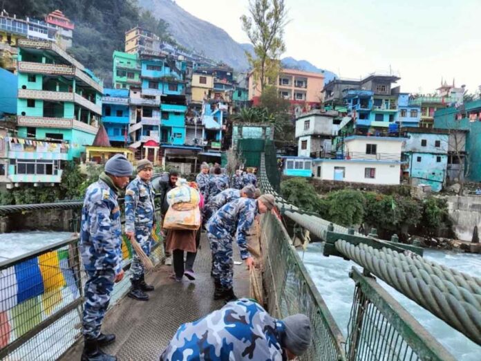अंतरराष्ट्रीय झूलापुल पर चलाया सफाई अभियान