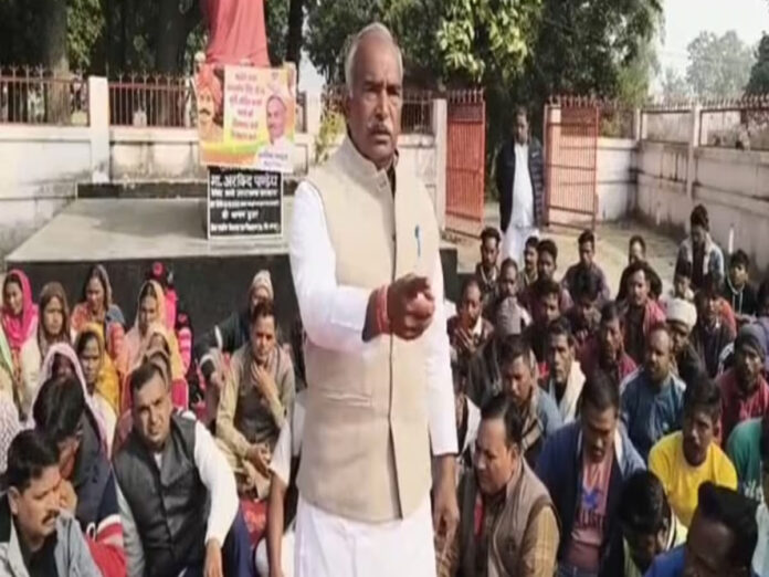 विधायक अरविंद पांडे ने बुक्सा समाज के लोगों के साथ डलबाबा मंदिर परिसर में दिया धरना