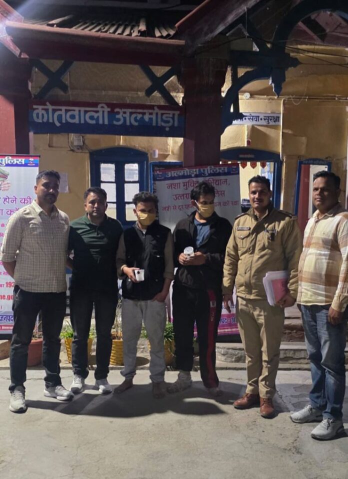 अल्मोड़ा। वरिष्ठ पुलिस अधीक्षक चंद्रशेखर घोडके के निर्देश पर जिले में चल रहे नशा विरोधी अभियान के तहत पुलिस को बड़ी सफलता मिली है। कोतवाली अल्मोड़ा और एसओजी की संयुक्त टीम ने चेकिंग के दौरान दो नशा तस्करों को गिरफ्तार कर उनके कब्जे से 11.46 ग्राम अवैध स्मैक (हेरोइन) बरामद की है, जिसकी कीमत करीब 3.43 लाख रुपये आंकी गई है। पुलिस के अनुसार लोधिया बैरियर के पास चेकिंग के दौरान सज्जन बिष्ट (23) निवासी दुगालखोला, अल्मोड़ा के कब्जे से 5.30 ग्राम और प्रभांशु उर्फ कन्नू कपिल (28) निवासी ग्राम दियारी, कोतवाली भवाली, जिला नैनीताल के कब्जे से 6.16 ग्राम स्मैक बरामद की गई। दोनों आरोपियों को मौके से गिरफ्तार कर कोतवाली अल्मोड़ा में एनडीपीएस एक्ट की धारा 8/21 के तहत मुकदमा दर्ज किया गया है। जांच में सामने आया है कि प्रभांशु उर्फ कन्नू कपिल के खिलाफ पूर्व में भी एनडीपीएस एक्ट के तहत दो मामले दर्ज हैं। पुलिस ने दोनों आरोपियों के खिलाफ आवश्यक कानूनी कार्रवाई शुरू कर दी है। पुलिस अधिकारियों ने बताया कि जिले में नशे के खिलाफ अभियान लगातार जारी रहेगा और इस तरह के अवैध कारोबार में लिप्त लोगों पर सख्त कार्रवाई की जाएगी।