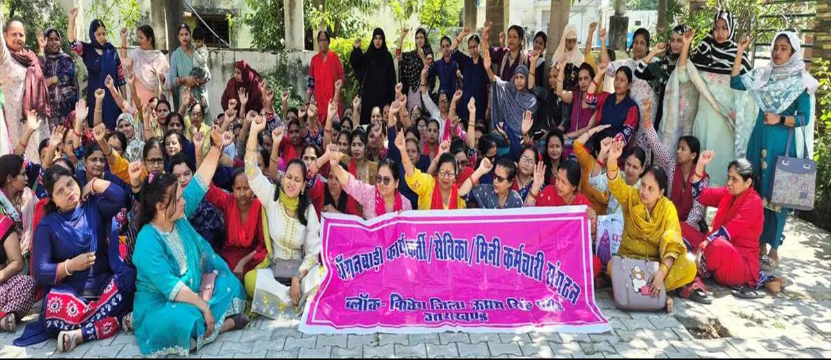 मानदेय बढ़ाने की मांग को लेकर आंगनबाड़ी कार्यकत्रियों का धरना जारी