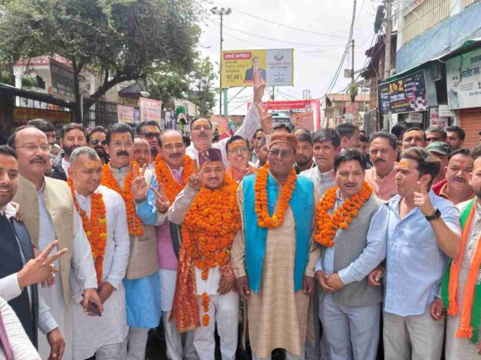 दर्जा मंत्री गोविंद पिलख्वाल का अल्मोड़ा में भव्य जुलूस के साथ स्वागत