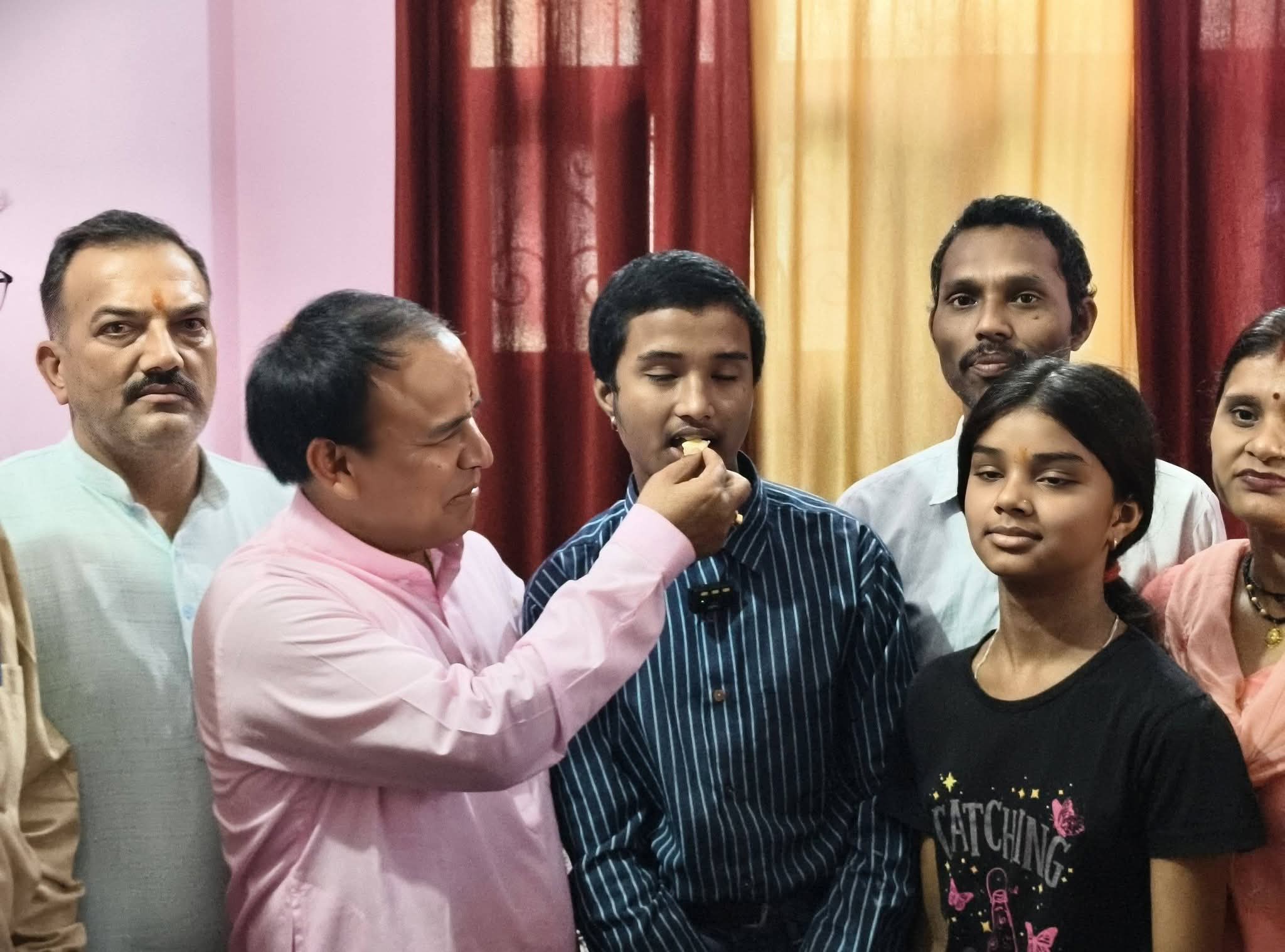 हाईस्कूल बोर्ड परीक्षा के टॉपर अक्षत के घर पहुंचे शिक्षा मंत्री, दी बधाई :